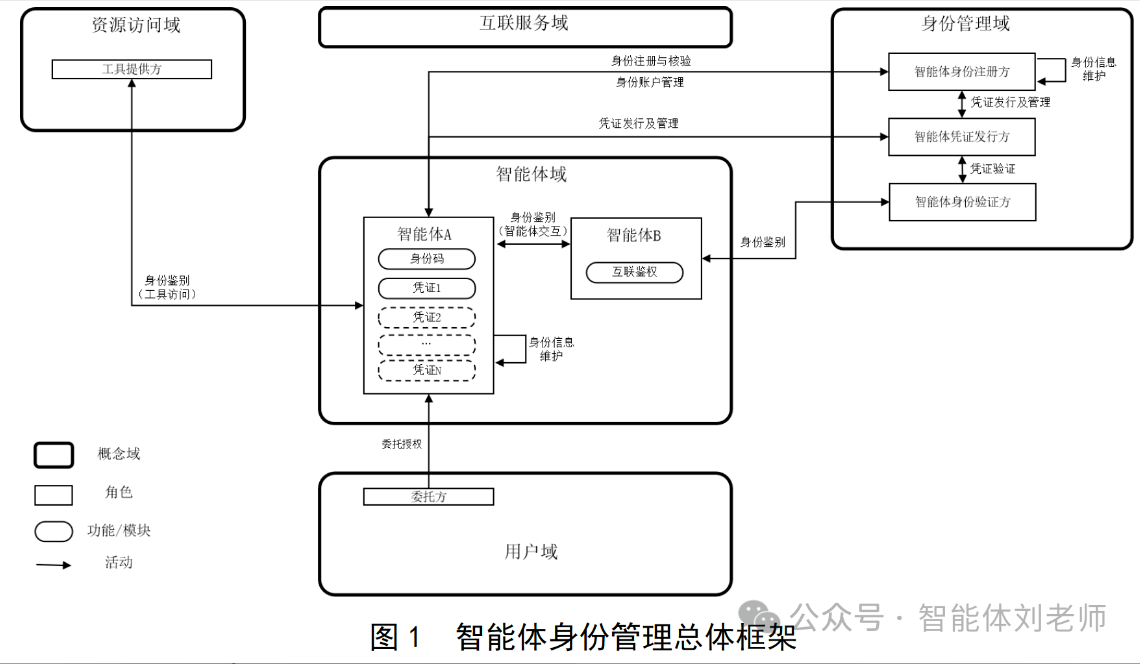 - 智能体凭证发行方:即为智能体创建身份凭证,并进行管理和验证的功能实体。例如:一个身份证书服务器。