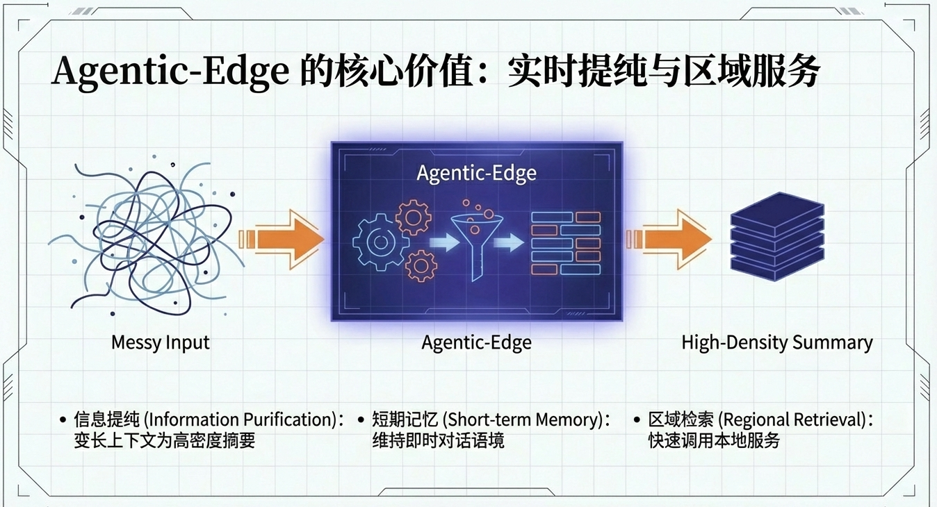 - 边缘(Agentic-Edge):距离近、时延低、带宽充足,适合实时推理、短期记忆、区域检索与工具代理