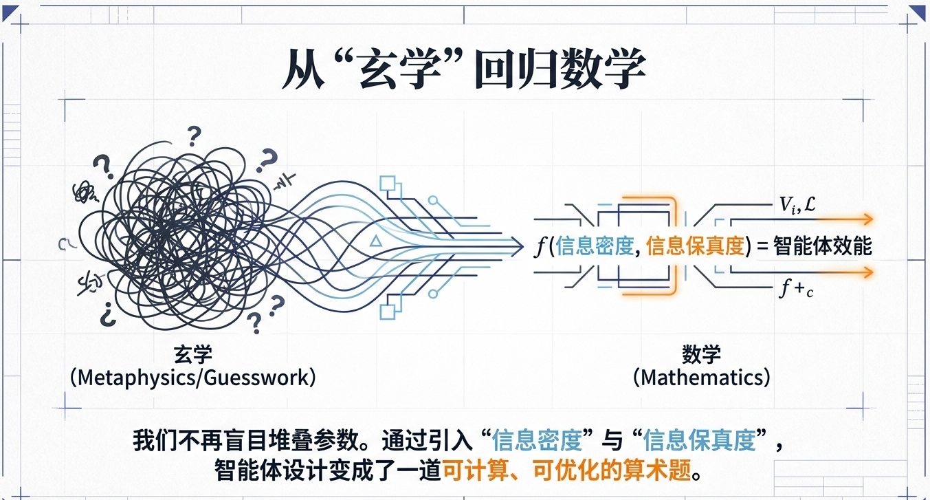 基于信息论的“信息密度/信息保真”理论方法对上述问题进行求解,我们可以将目前的智能体AI系统模型组合和算力分布设计的玄学问题,转化为能持续迭代的数学问题,这将会是智能体AI系统落地的黄金计算尺。